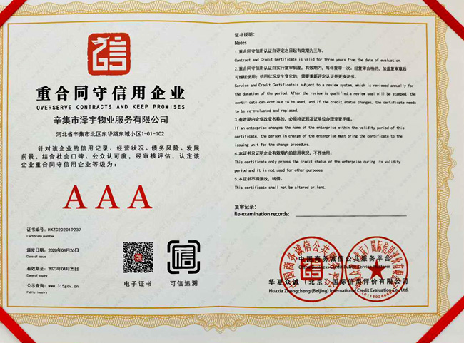 | 榮獲重合同守信用企業 |